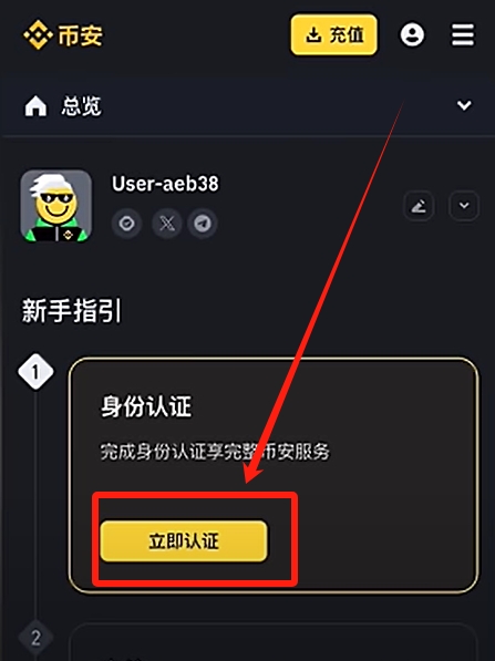 账号注册好之后我们需要进行身份认证才能进行交易,我们点击【立即认证】。