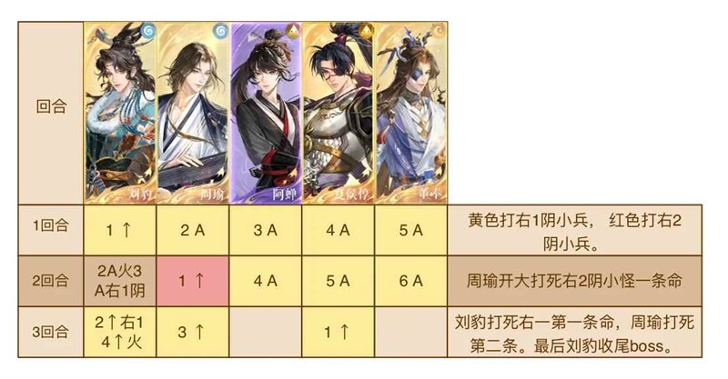 2个小怪都打死2次,再打boss。用刘豹周瑜爆发,对练度有一定要求,可以换配队,只要机制明白就行。