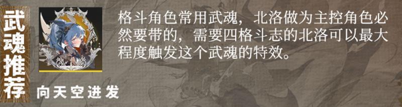 向天空进发作为格斗系角色的代表性武魂,常与北洛这类高爆发主C绑定使用。该武魂需消耗四格斗志以激活全部增益效果,在战斗节奏紧凑的情况下能显著提升输出频率。只要队伍中存在依赖连招与能量循环的主力输出角色,向天空进发都能发挥出稳定的增伤作用,是当前版本格斗流派的核心选择之一。