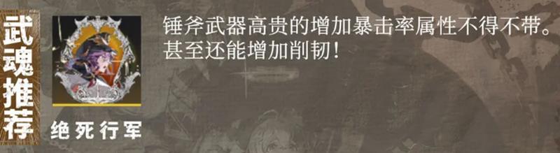 绝死行军主要服务于使用锤斧类武器的角色,具备提升暴击率与削韧能力的双重优势。该武魂在面对高韧性敌人时尤为有效,能够加快破防节奏,为后续输出创造有利条件。配合克拉拉等SSR级烬天使时,整体战斗表现更加全面,是攻坚副本与BOSS战中的热门选择。