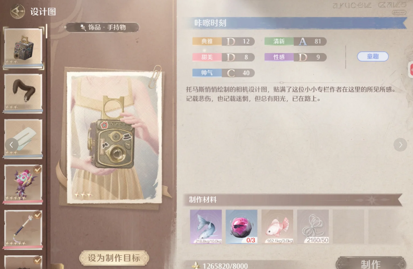 2、完成任务后最后可以获得咔嚓时刻的饰品设计图