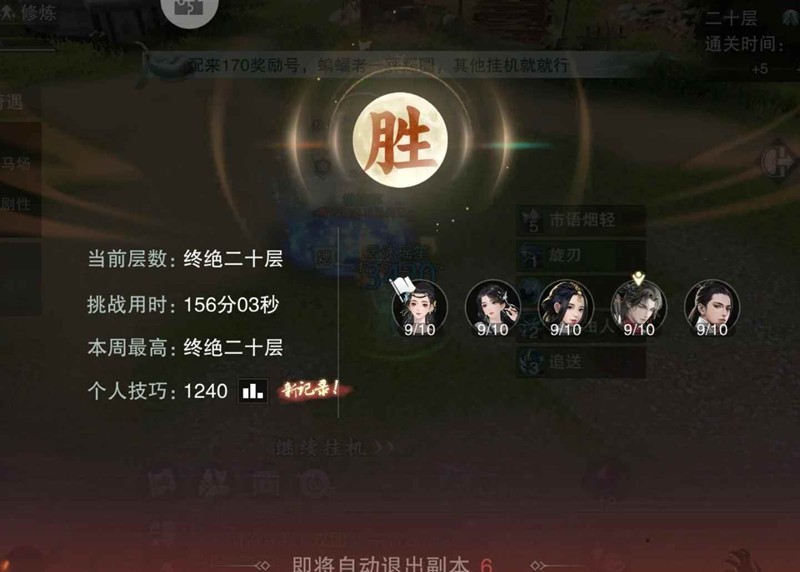 9.打的很快直接压到八十左右的队伍,开局正常刷绝学,齐盛第一次长条射箭后起轻功套盾,其他正常奶