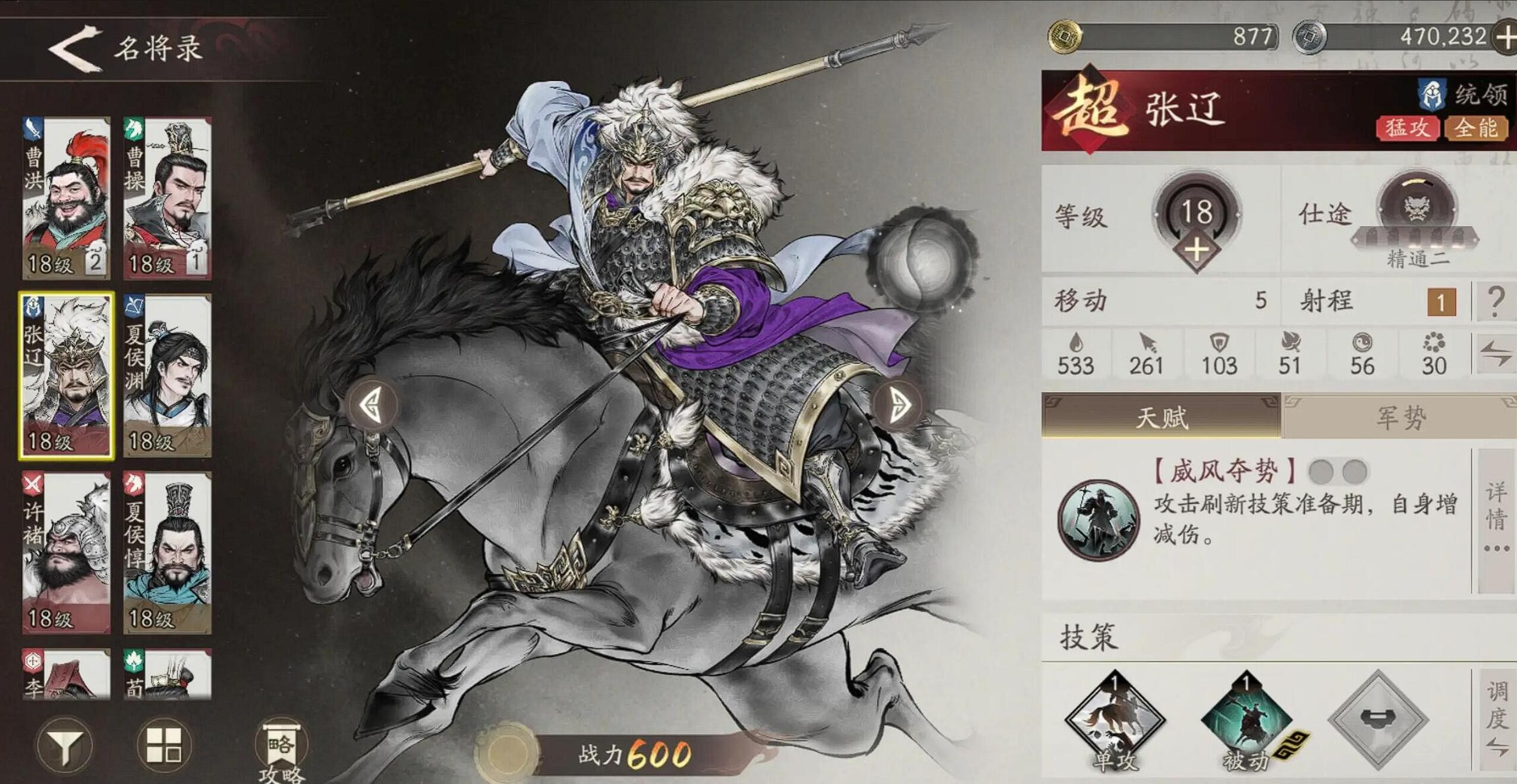 张辽的被动技能在攻击前会计算移动距离,每移动1格增加3%伤害,因此开战前需要调整站位。配合突袭自带的15%加成,实际能打出30%的额外伤害,足以秒杀同等级的荀彧。这个移动增伤机制虽然不会显示在技能描述中,但在训练场木桩测试中是有效果的。
