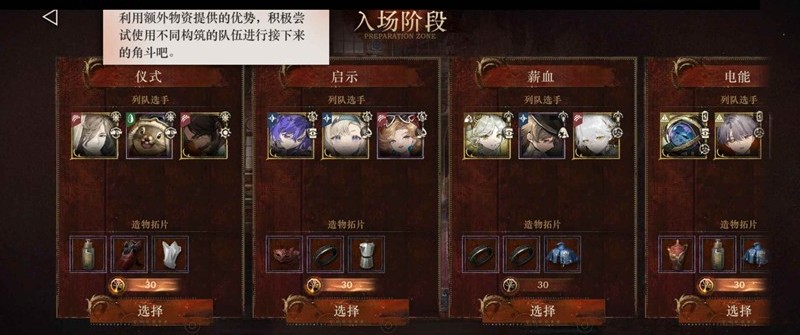 1.队伍选择:先选个开局好打的队伍,不要单看名字。我最开始选薪血队,但一直没刷到诺谛卡,用温妮打纯坐牢。而且二周目没选的队伍有额外物资,薪血队建议后面再选。