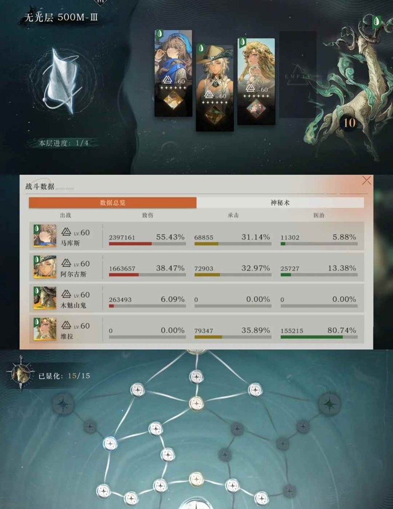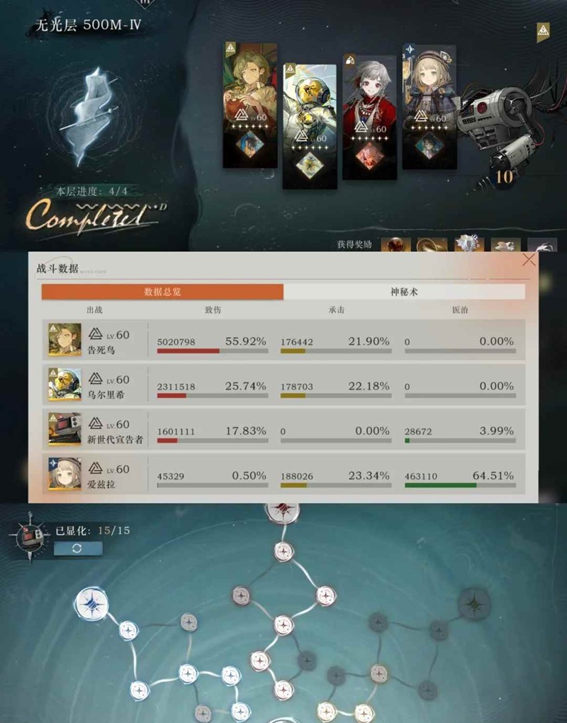 如果第四阶段开始还在三级电场,那就背后灵大 + 告死鸟大 + 组长大结束战斗;如果不幸没有,那就先努力活着,并给电场充电
