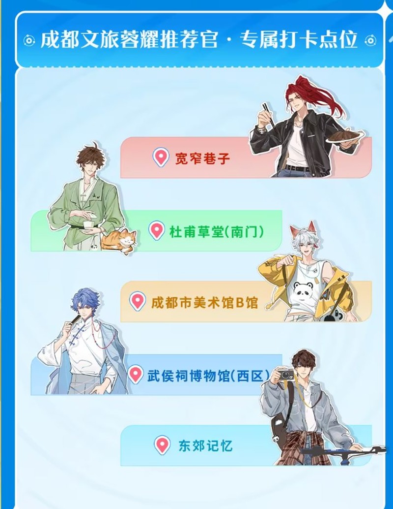 在成都的多个地标位置,玩家可以通过NFC技术与英雄装置进行互动,收集英雄卡。这些装置分布在市中心片区、商业步行街片区、武侯祠片区和芳草街片区,共计超过127个英雄NFC立牌装置。