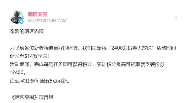 暗区突围2400装扮券活动延长多久-活动延迟时间