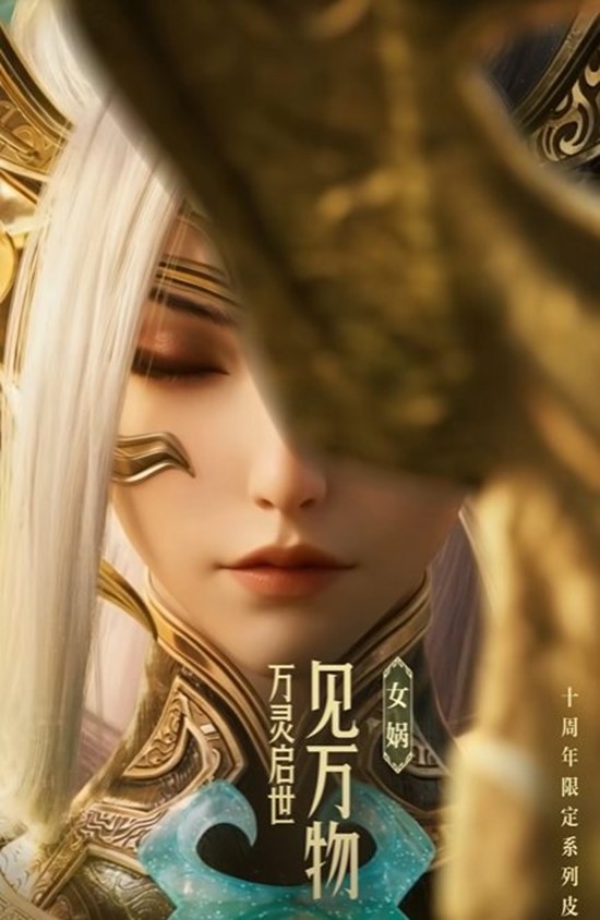 获取方式:2025年10月15日版本更新后~10月29日23:59参与游戏内【周年庆皮肤免费送】活动,可在2-9周年限定皮肤与女娲-万灵启世皮肤中任选1款免费送。2025年10月30日版本更新后-2025年12月24日23:59,女娲-万灵启世将上架皮肤商城限时售卖,首周710点券(首周结束后为888点券)。