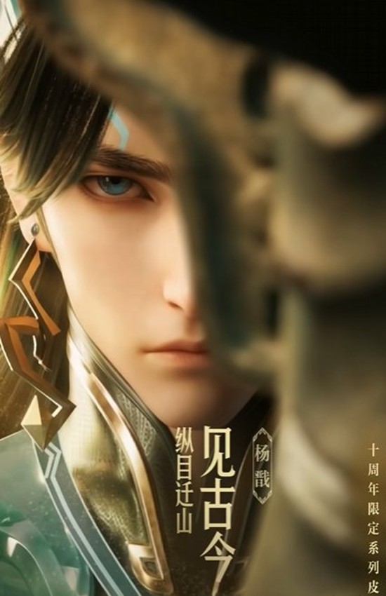 皮肤以三星堆青铜大立人像为灵感,以金绿色为主色调,融入青铜纹路、神鸟图腾等元素,技能特效呈现青铜巨眼开合的视觉奇观。