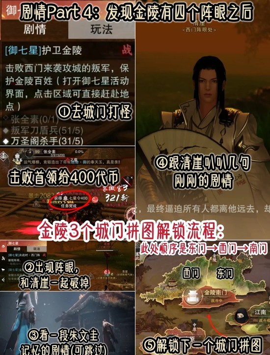 殴打江南叛军解锁金陵东城门拼图,打的叛军方位决定了解锁哪个方位的城门(猜测)