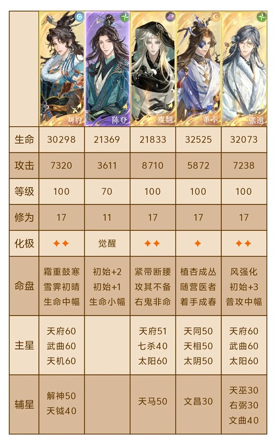 一星董奉无孔融队,董奉着手不必要,具体练度见图
