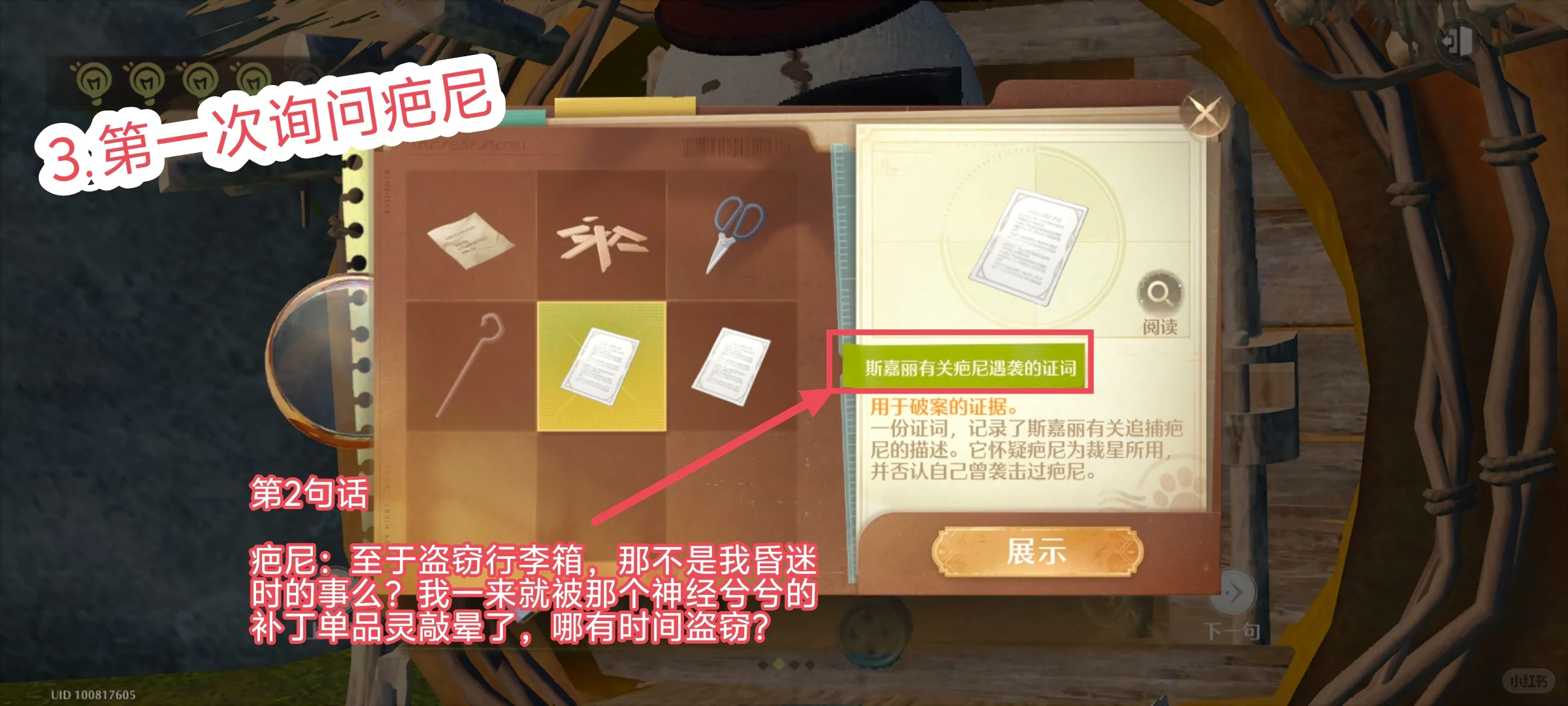 疤尼:至于盗窃行李箱,那不是我昏迷时的事么?我一来就被那个神经兮兮的补丁单品灵敲晕了,哪有时间盗窃?