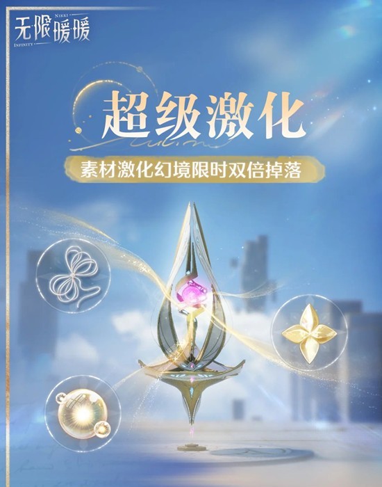 ● 活动规则:活动期间,进入「素材激化幻境」,使用素材激化台可换取双倍材料,每日超级激化活跃能量点数上限为120。