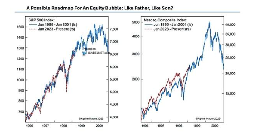 正如 RealInvestmentAdvice.com 的文章所分析,每个泡沫的核心都有一个故事。1999 年的故事是网际网路,而 2025 年的故事则是人工智慧,两者都带来了重塑产业、引爆生产力的巨大想像空间。