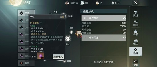 2.经脉从三开到了四层,有条件优先推荐阙阴加内外功伤害