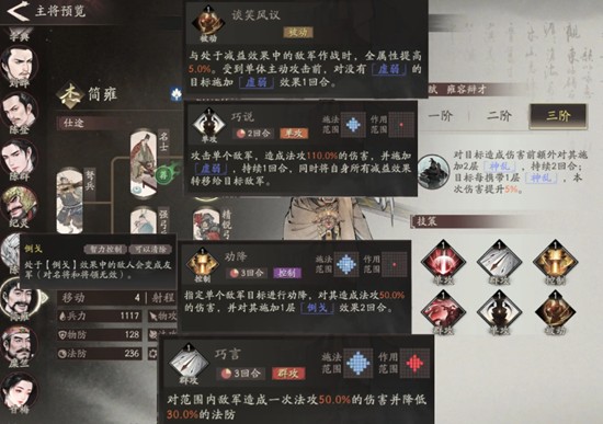简雍在三国望神州中定位为法术辅助型角色,核心优势在于高智力属性和强大的群体控制能力。他的技能体系以减速、持续伤害和团队增益为主,能够在战斗初期就为队伍创造有利局面。由于其法术输出潜力不容忽视,因此在资源分配上应优先保障技能等级的提升,尤其是主控技能的升级,能显著延长敌方单位的减速时间并扩大作用范围,适用于多种战斗场景。