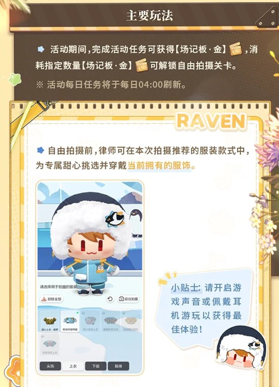 活动期间,完成活动任务可获得【场记板·金】耗指定数量【场记板·金】可解锁自由拍摄关卡。