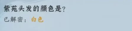 问剑长生神念禁制关于紫苑的题目解密答案分别是白色头发、宗门名称六欲门、它是一个镜子、无法理解的情感是大爱、父亲的名字是紫宸真人。