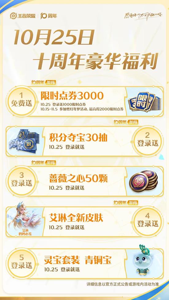 更多福利,都在10.25王者十周年庆~
