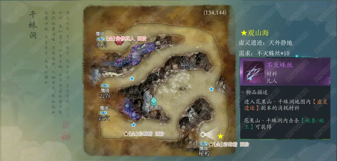 10、花果山·千蛛洞蛊修真人,岩蛛精五彩石产出,可以提升炼妖葫