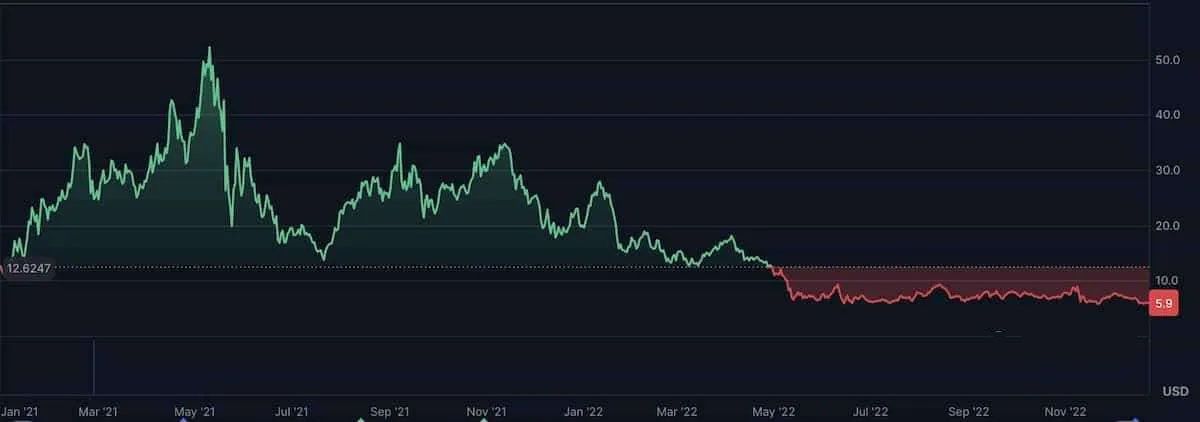 然而,由于市场整体调整以及对更严格监管的担忧,价格随后下跌,到年底跌至 20 美元左右。