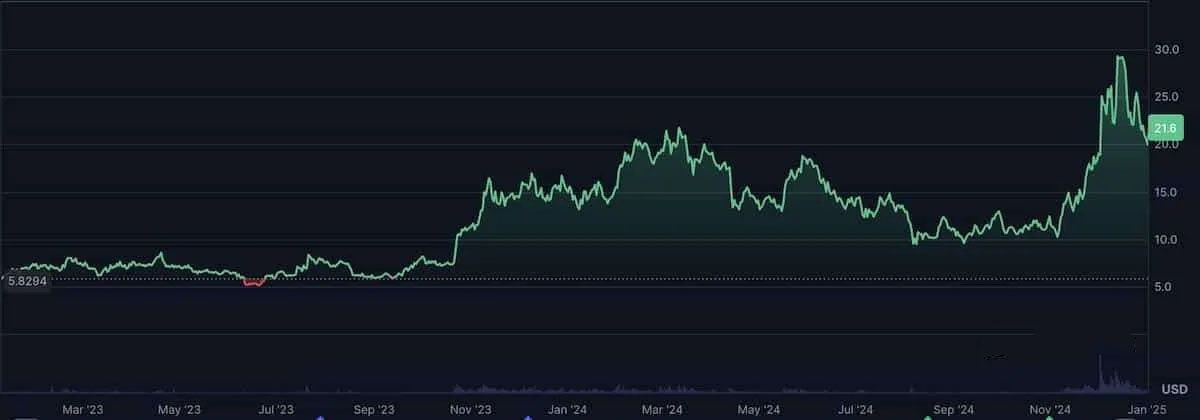 特别是自2023年下半年以来,价格大多在10美元左右波动,但DeFi市场的复苏和新合作伙伴关系的宣布推动价格上涨,一度超过15美元。