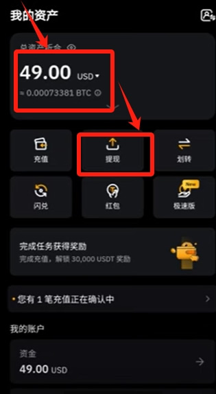 接下来我们再点击【提现】,就可以直接提现了。币种选择USDT。