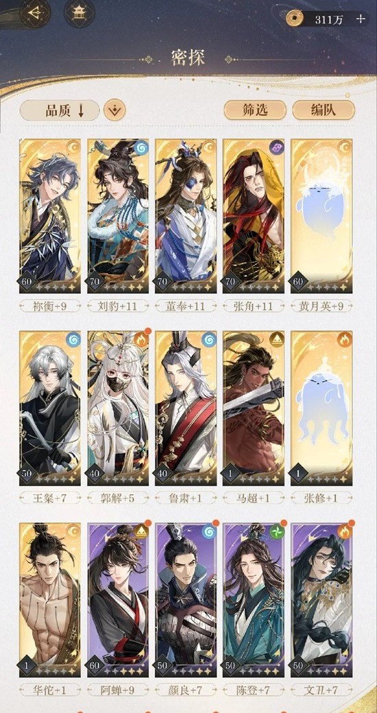② 走机制的打法需要风属性密探和火属性密探的配队