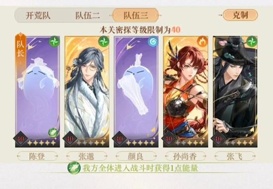 由于上面所说的〖机制第三条〗,所以用火群攻和风群攻是最好的,风群目前只有荀彧,有〖荀彧+群攻孙尚香/张郃〗这关想怎么打怎么打