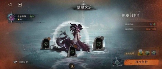 原型剖析是定期开放的进阶挑战关卡,完成“原型补全”全部关卡后,可解锁此关卡。剖析可获得通关奖励,并在【思想偶得】处获得限时奖励。
