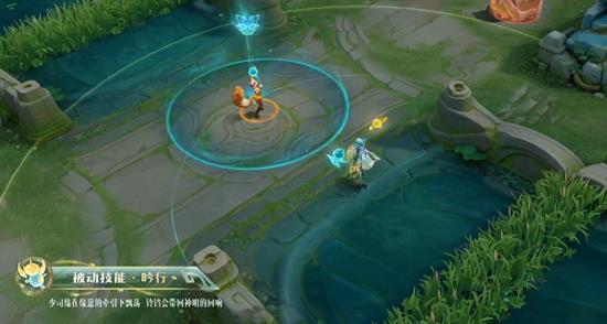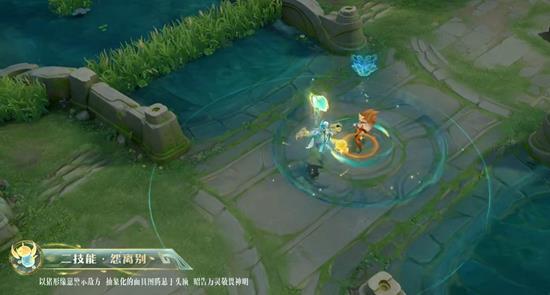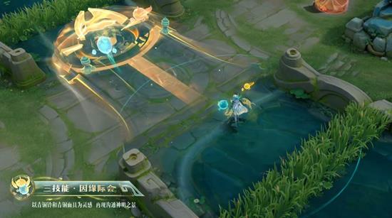 三技能:大招以青铜铃和青铜面具为灵感,再现礼拜神明之景。缘崽沿铃铛排列的指引之路跃出,随着铃音荡开,巨大的金色面具虚影显现。当铜铃消散后,地面留下的神迹残影,仿佛诉说着人神对话的故事。