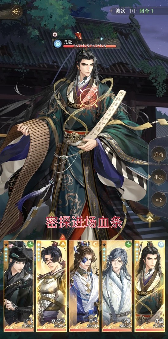 密探阵容:1张飞 2夏侯惇 3董奉 4张邈 5孔融