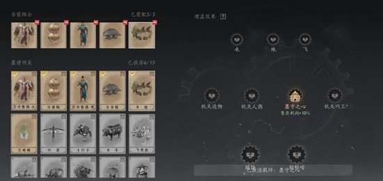 墨谱的加成来自于抽卡(后勤铺里面买箱子),一共能摆5张,凑齐各种加成需要的卡并且摆放上去就可以获得加成了,这个也预览不到,解锁了才知道是什么