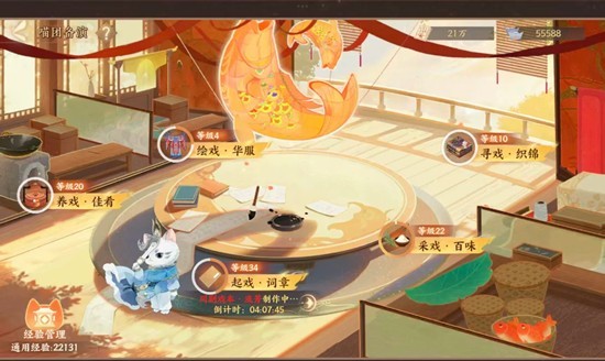 可以看到有五个项目,其中采戏,养戏获得的是猫饭,寻戏,绘戏获得的是戏服,起戏获得的是戏本