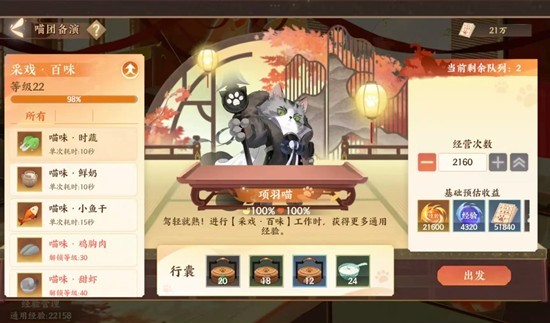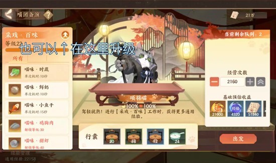 猫饭所需要的地方很多,生产演戏材料,演戏,祝福都需要用到猫饭,*登台亮相所需要的戏本猫饭戏服比例是8:1:1