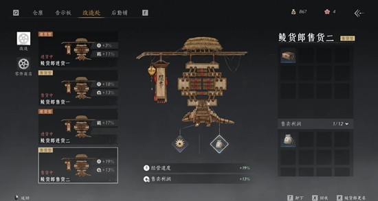 ·收集货物的鲮货郎改造处安装【经营速度】+【收集容量】(对应商品类型)零件