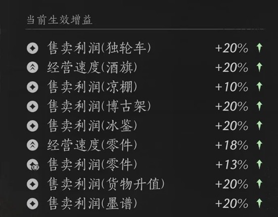 有妙妙喵则选【妙妙喵】+【墨守之心】:经营速度+15%和售卖利润+10%