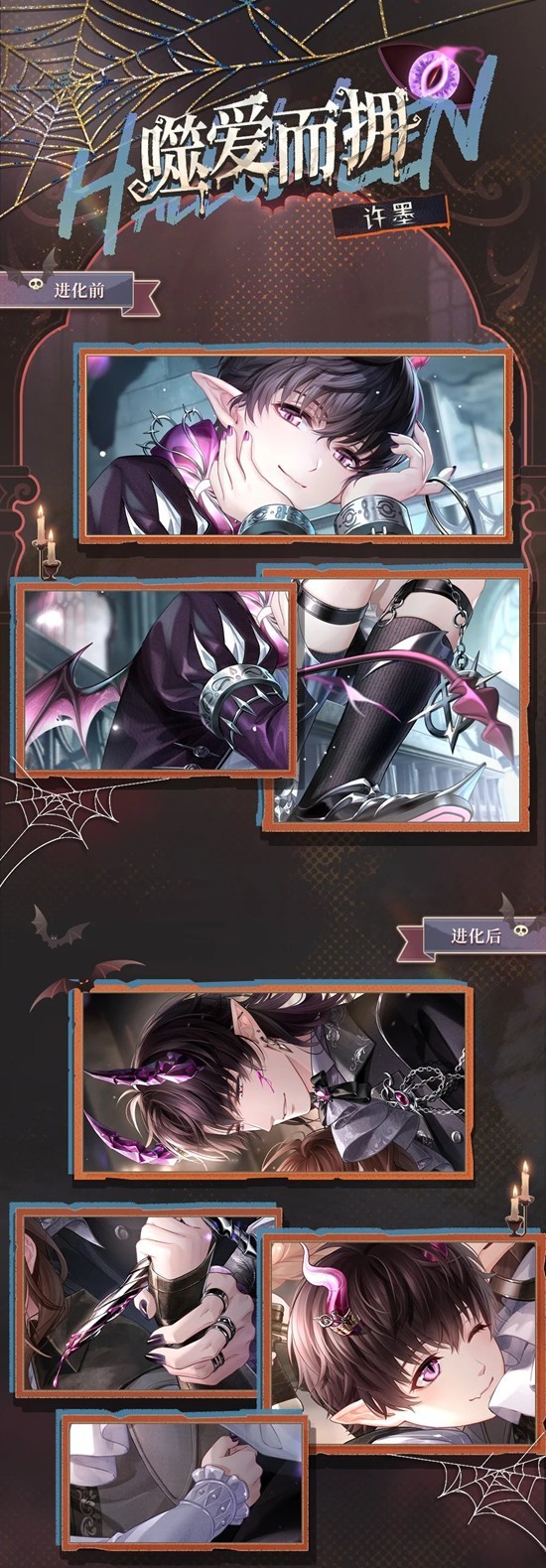 恋与制作人失乐园主题许墨 · 噬爱而拥10月28日上线~一觉醒来,被告知自己其实是魅魔?!想要完成卢西恩考官的任务,就必须接近人类许墨。全新SSR羁绊【许墨·噬爱而拥】限时上架许愿树,商店兑换同期开启,期间概率UP!一起来和小编看看吧~