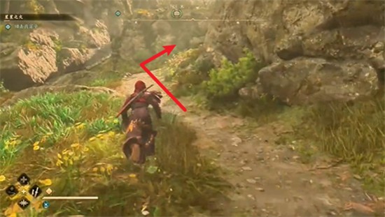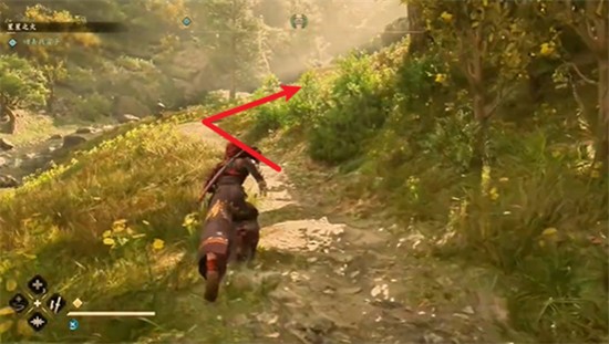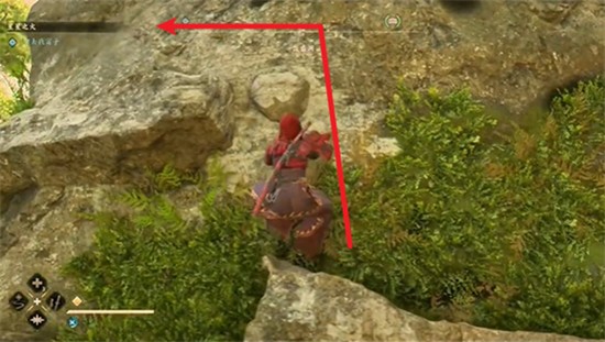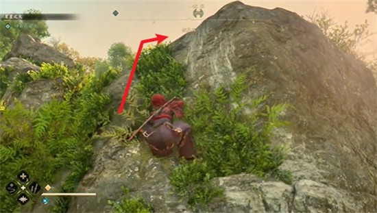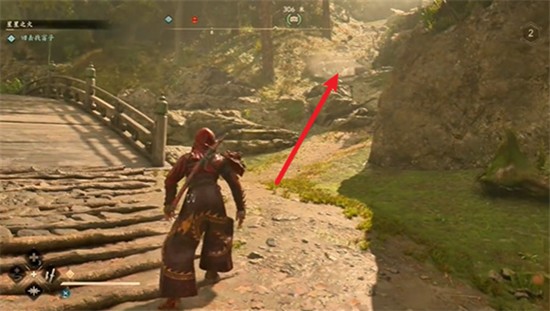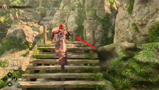 行进一段距离后,会抵达一座横跨溪流的木质桥梁。桥体略显陈旧,但结构稳固,可安全通过。过桥后立即注意右侧区域,有一处较为明显的岩石堆叠地形。此处需要切换为攀爬模式,沿着岩石的凸起部分向上移动。