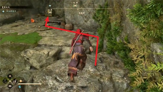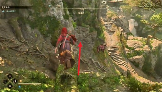 攀爬至岩石高处后,正前方会出现一个小型平台,平台对面即为目的地山洞入口。山洞位于另一侧岩壁凹陷处,由一条狭窄的木栈道连接。栈道虽窄但无陷阱或敌人埋伏,平稳通过即可抵达对岸。