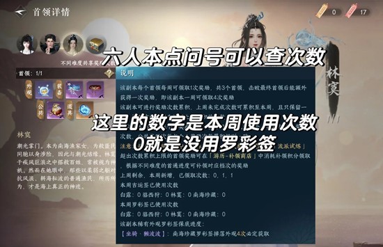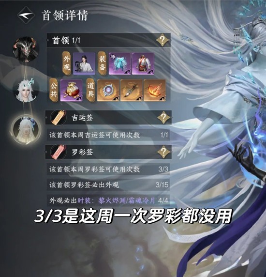 首通即用罗彩签:字面意思,就是说本周第一次打本就可以直接使用罗彩签