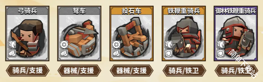 ① 出战卡牌推荐:弓骑兵+弩车+投石车+铁鞭重骑兵+御林铁鞭重骑兵
