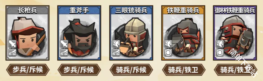 ② 出战卡牌推荐:长枪兵+重斧手+三眼铳骑兵+铁鞭重骑兵+御林铁鞭重骑兵
