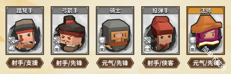 ① 出战卡牌推荐:踏弩手+弓箭手+骑士+投弹手+法师