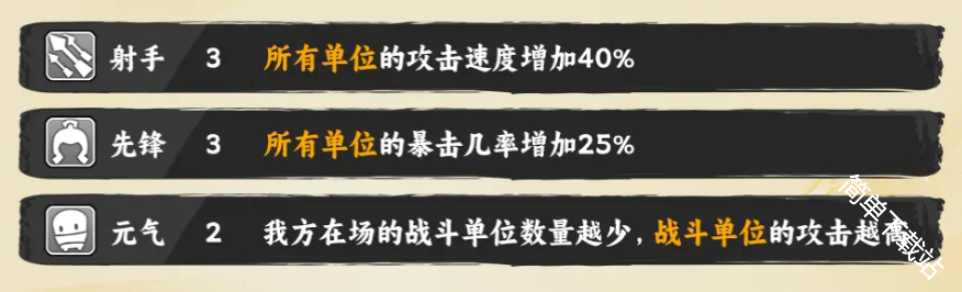 元气2-我方在场的战斗单位数量越少,战斗单位的攻击越高