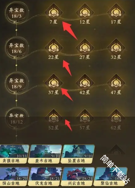 所有古地一律优先平均升级到4、16、 28星(贪狼、奎木、坠星古地)