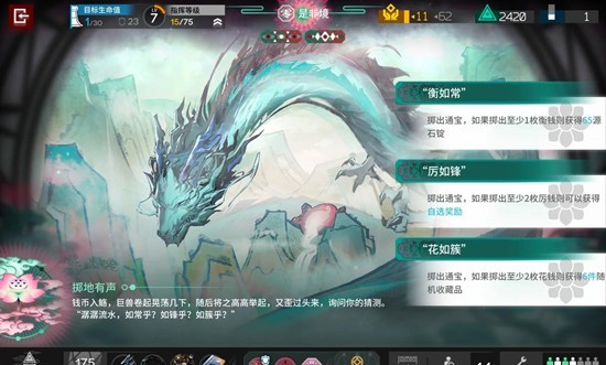 2、游客分队的钱盒里,初始是4个历钱,8个衡钱(也有例外,5历7衡的情况),这时候我们需要找到三枚历钱替代衡钱,使钱盒里的数量为七个历钱,五个衡钱,俗称七历五衡。