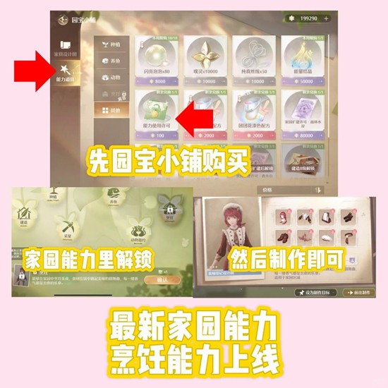 购买完之后前往家园能力解锁,并去设计图中制作烹饪能力套装即可!