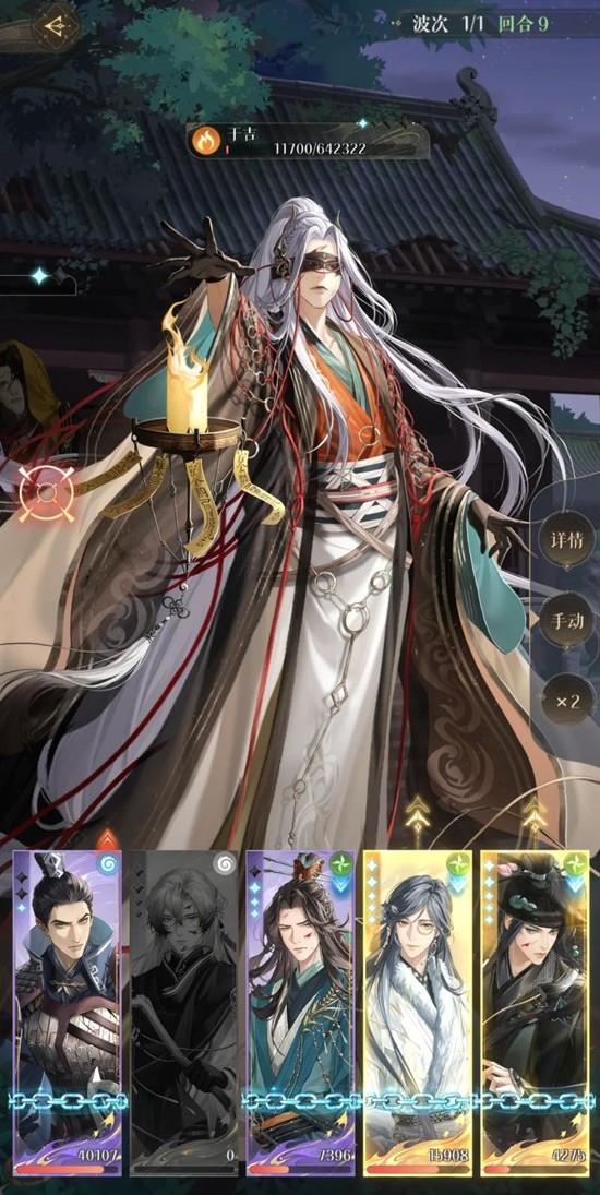 干吉放大时(单体伤害),用颜良放大嘲讽,其他人正常攻击即可。