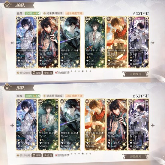 上的配队偏邪修速杀,下的就比较通用,除了个别关卡其他可以挂机